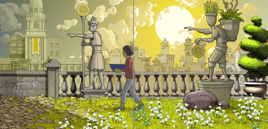 Para quem busca jogos curtos e fora do padrão, Gorogoa é uma escolha certeira. O título aposta em quebra-cabeças criativos e em uma narrativa visual que se desenvolve por meio de quatro painéis interativos, onde cada movimento ajuda a contar a história sem usar palavras.