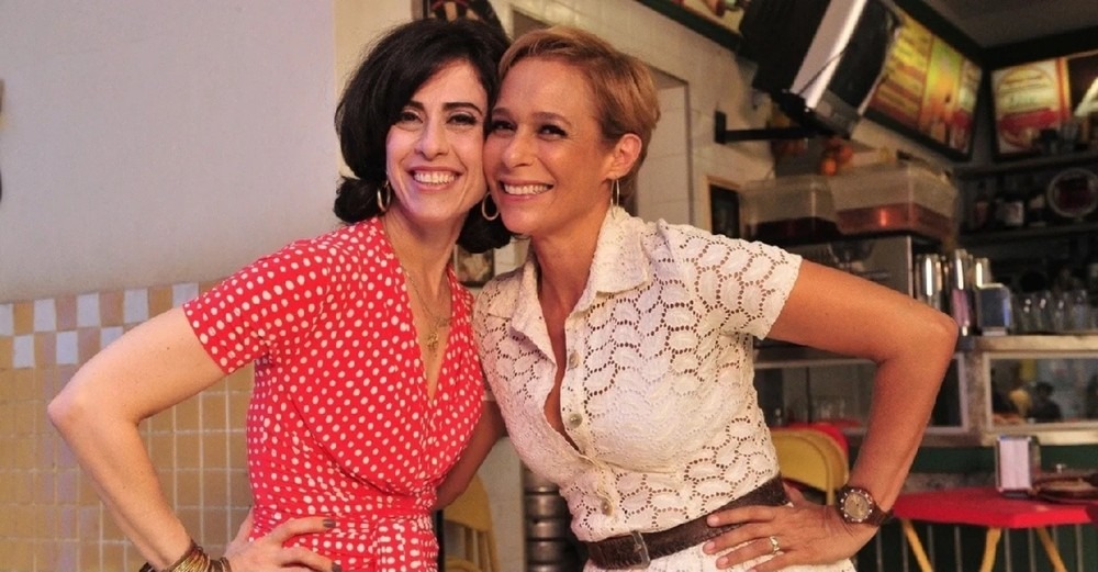 A série conquistou o público na época e segue popular nas redes sociais, com memes e cortes que mantêm o humor vivo. Fernanda Torres e Andrea Beltrão interpretam as protagonistas, enquanto Vladimir Britcha, Érico Brás, Flávio Migliaccio e Otávio Muller completam o elenco. Ambientada entre a loja Djalma e o restaurante do seu Chalita, a série mescla comédia e romance com grande charme. Em janeiro de 2025, Tapas e Beijos foi a produção mais assistida do Globoplay, atingindo nota 8 no IMDb.
