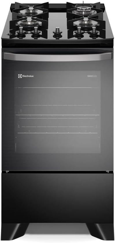 O Electrolux FE4GP se diferencia dentro da linha por oferecer um forno maior, com 72,6 litros, o que amplia as possibilidades de uso no dia a dia. Esse espaço extra facilita o preparo de receitas maiores e permite utilizar formas mais volumosas sem tanta limitação, algo que nem sempre está presente em modelos de 4 bocas.