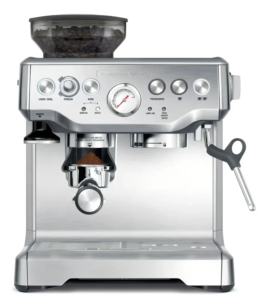 A Tramontina by Breville Express é uma cafeteira expresso premium pensada para quem busca mais precisão e controle no preparo do café em casa. Além disso, ela se destaca por oferecer recursos avançados que aproximam a experiência do uso profissional.