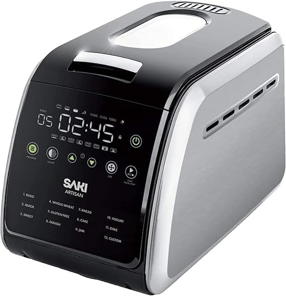 A Saki é uma excelente escolha para quem busca uma máquina de pão com capacidade maior e desempenho consistente. Ela permite preparar pães de até 1,5 kg e ainda oferece ajustes de crocância para deixar a crosta mais clara, média ou escura. Além disso, o timer é um dos destaques, já que possibilita programar o preparo com antecedência e garantir pão quentinho na hora certa.