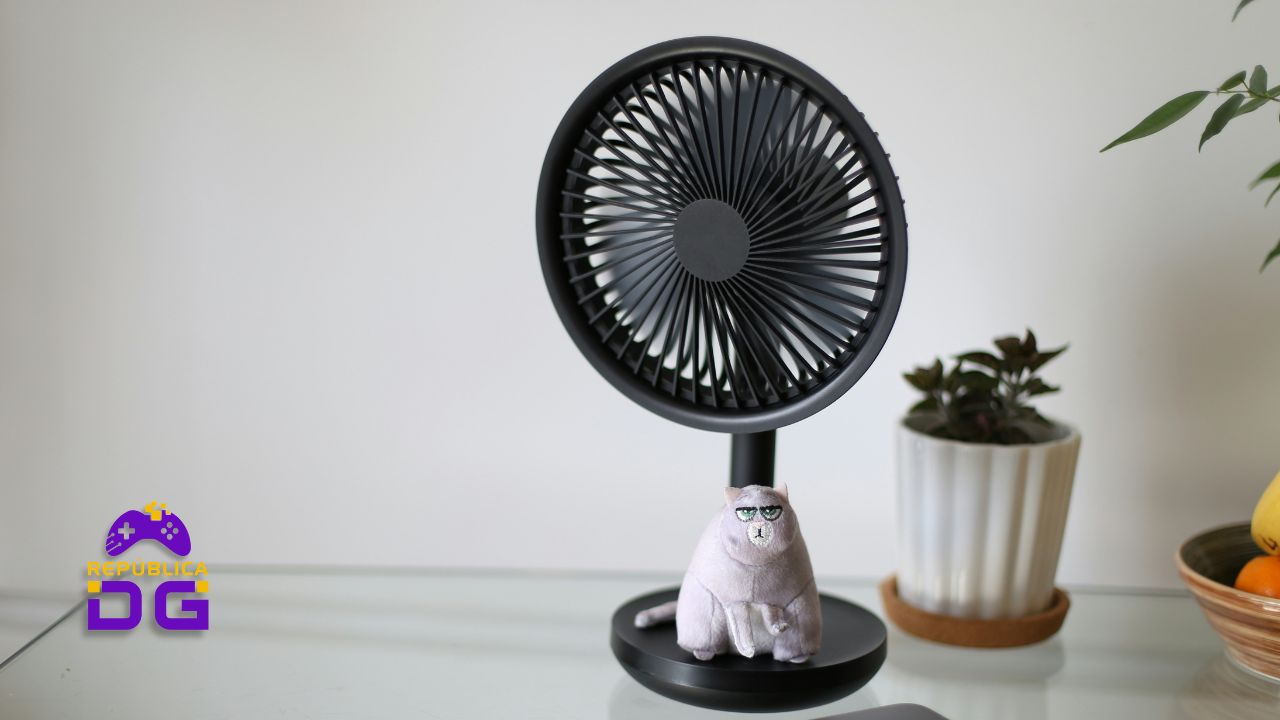 Com autonomia de até várias horas e carregamento via USB-C, ele garante mais liberdade sem depender de tomada o tempo todo. A rotação ajustável também ajuda a direcionar melhor o vento conforme a necessidade.