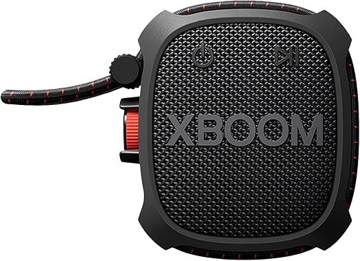 A caixa de som portátil da LG se destaca pela bateria que dura até 18 horas e pela resistência IP67, garantindo proteção contra água e poeira. Com potência de 20 W RMS, ela oferece um som claro e potente, realçado por um algoritmo que aprimora os graves, fazendo cada nota soar com mais intensidade.