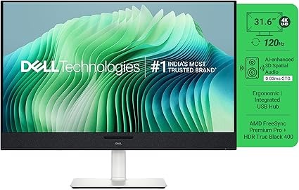 Se o ASUS ROG Swift OLED PG27UCDM foge do seu orçamento, o Dell S3225QC aparece como uma alternativa mais acessível dentro do universo OLED. Ele utiliza painel QD-OLED 4K, o que garante pretos realmente profundos, excelente contraste e um HDR que chama atenção logo de cara. Além disso, o tempo de resposta é praticamente instantâneo, algo ideal para jogos no PS5 e PS5 Pro. Com HDMI 2.1, o monitor aproveita bem sinais em 4K e entrega uma experiência muito fluida.