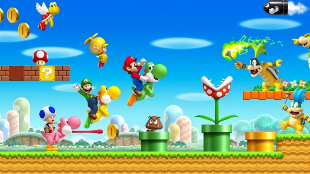 Com lançamento em 15 de novembro de 2009, New Super Mario Bros. Wii ampliou o coop para quatro jogadores em plataformas 2D. A série já permitia dois jogadores, mas esta versão consolidou a fórmula de jogar junto em tempo real, mantendo o ritmo da aventura mesmo com múltiplos participantes.