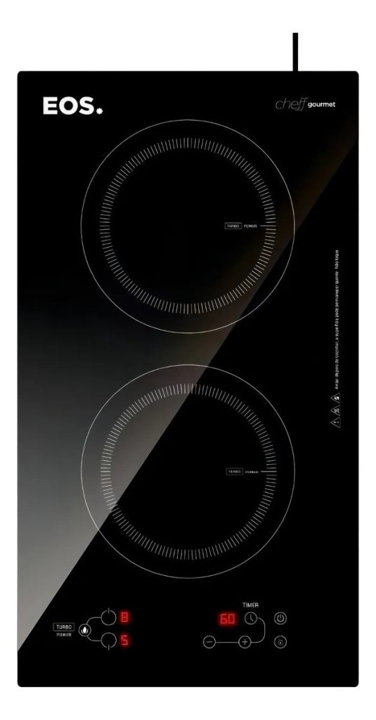 Um dos diferenciais está nas duas zonas de indução com tamanhos distintos. Dessa forma, é possível usar panelas menores ou recipientes maiores com mais praticidade. Além disso, o cooktop traz painel touch screen, temporizador de até 99 minutos, trava de segurança e indicador de calor residual. A função Turbo também contribui para acelerar receitas que exigem mais intensidade de calor.