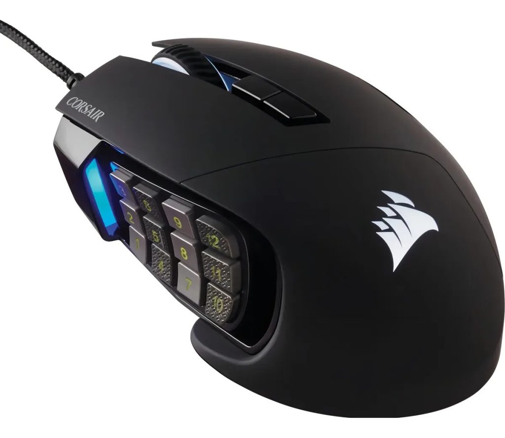 O Corsair Scimitar RGB Elite é uma opção feita para quem joga MMO e MOBA e busca precisão constante. O modelo utiliza o sensor óptico PixArt PMW3391, que alcança 18.000 DPI e permite ajustes finos de 1 DPI, garantindo controle absoluto em qualquer situação. Além disso, o mouse conta com cabo trançado e construção pensada para suportar longas sessões de jogo.