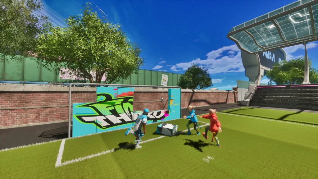 Além disso, as partidas acontecem em arenas fechadas, com física dinâmica e jogabilidade que lembra uma mistura de futebol com Rocket League, mas mais focada no realismo do movimento humano.