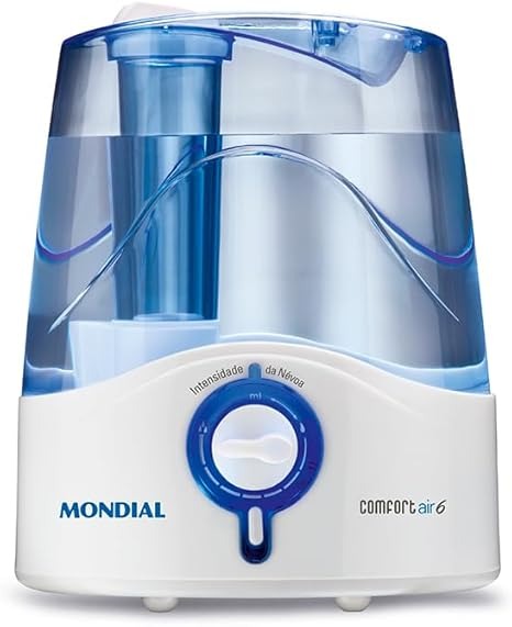Por ser do tipo ultrassônico, o funcionamento é silencioso e confortável. O Comfort Air 6 tem potência de 30 W e pesa 1,21 kg, o que facilita o transporte entre os cômodos.