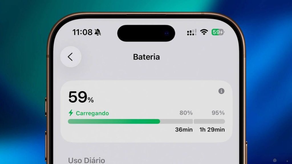 Com a atualização, ao conectar o iPhone ao carregador, a tela de bloqueio mostra quanto tempo falta para a bateria atingir 100%. Esse recurso ajuda a organizar melhor as atividades enquanto o aparelho carrega e também contribui para preservar a saúde da bateria, evitando que o celular fique conectado desnecessariamente.