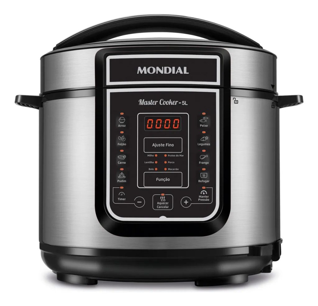 A Mondial PE-38 é uma panela de pressão elétrica que se destaca pelo bom custo-benefício e capacidade de 5 litros, sendo uma escolha interessante para famílias de até 6 pessoas. Com potência de 900W, ela entrega um desempenho adequado para quem busca praticidade sem investir em modelos mais avançados.