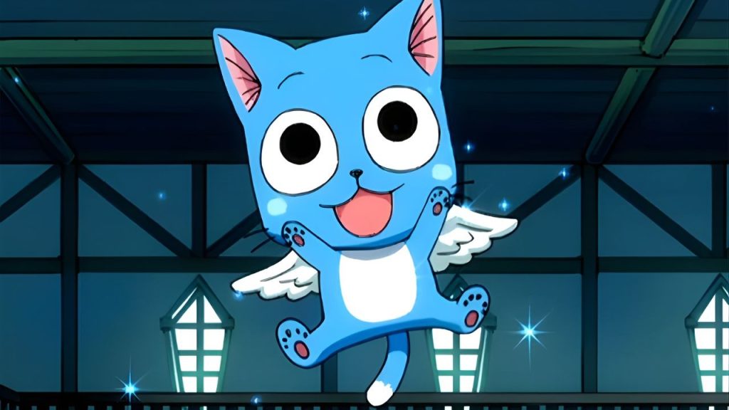 Happy é um dos personagens mais carismáticos de Fairy Tail e se destaca desde o primeiro momento em que aparece. Com suas asas azuis e o famoso Aye! ele segue Natsu em todas as aventuras, funcionando como parceiro, conselheiro e alívio cômico ao mesmo tempo. Além disso, sua personalidade bem-humorada e leal equilibra as situações mais tensas dentro da guilda.