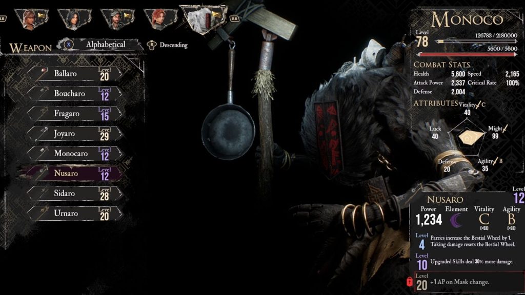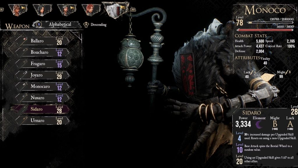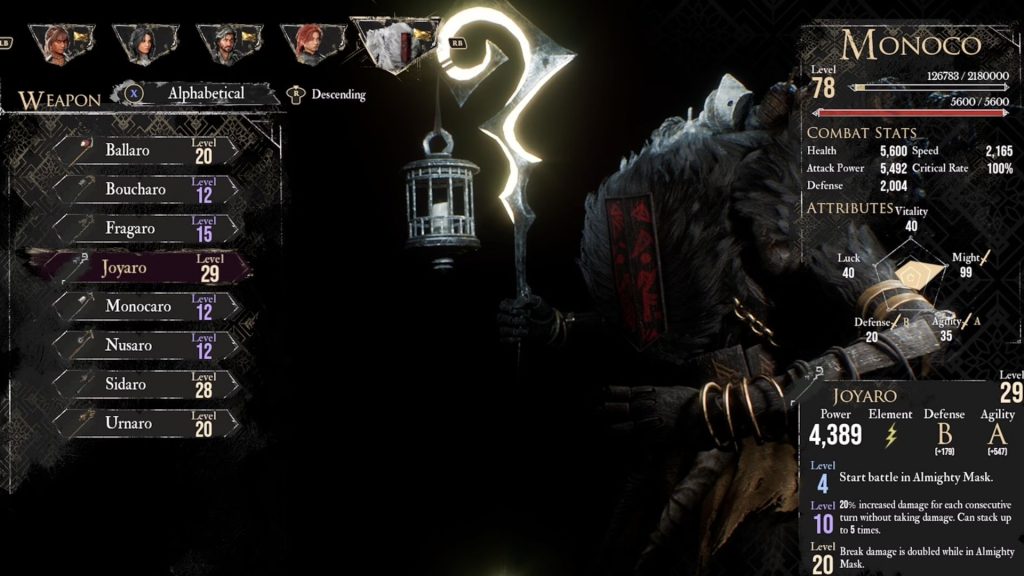 Joyaro é, sem dúvida, a arma mais forte de Monoco em Clair Obscur: Expedition 33. Assim, ela inicia todas as batalhas já com a Máscara Todo-Poderosa ativa, elimina a dependência da Roda Bestial e ainda escala o dano em até 100% se o personagem não sofrer dano.