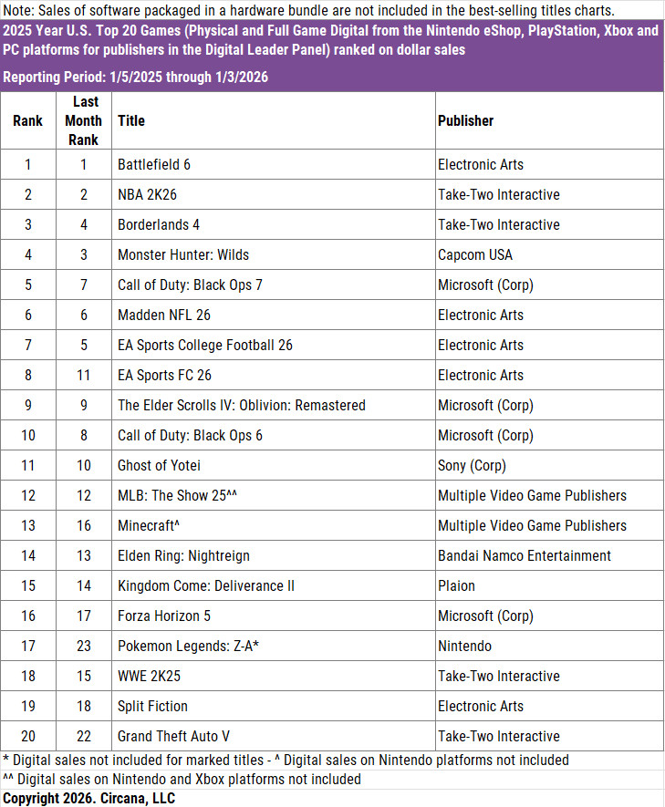 Mostrando que o hype em torno de Battlefield 6 foi correspondido, a Circana revelou que o mais recente título da EA foi o jogo mais vendido de 2025 nos Estados Unidos (EUA).