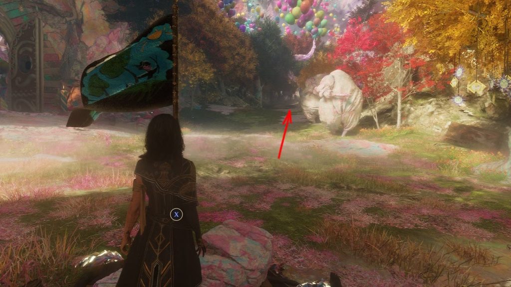 Para encontrar a segunda Gaiola de Tinta, volte até a bandeira da expedição no Caminho da Reverie. A partir dali, siga na mesma direção da porta do bolo.