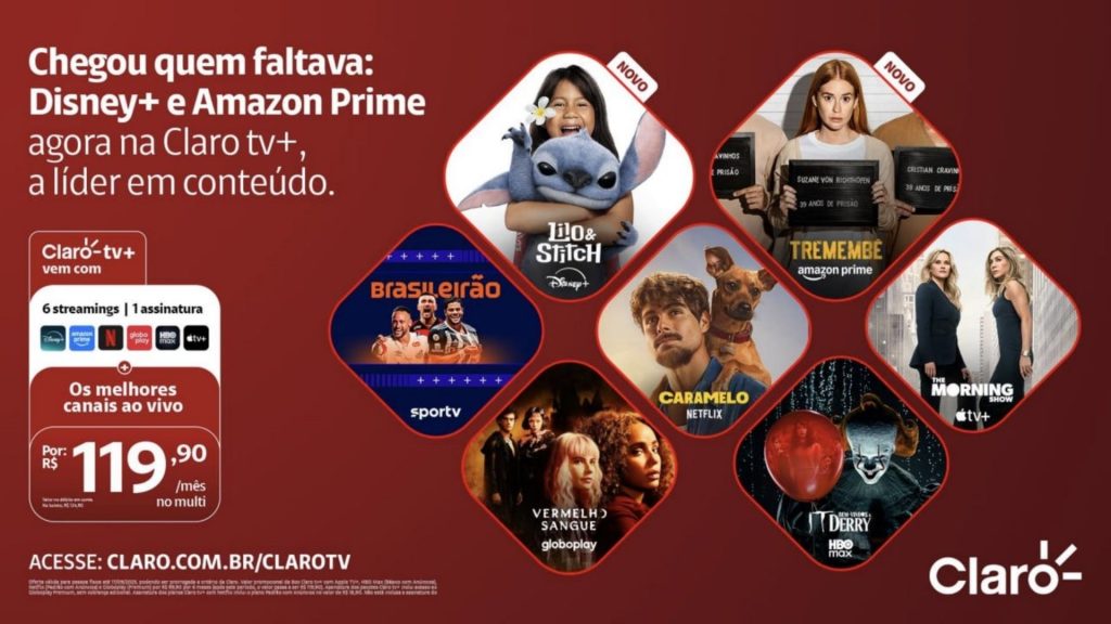 A Claro ampliou sua plataforma de streaming, Claro tv+, ao integrar as assinaturas do Prime Video e do Disney+ à sua oferta principal.