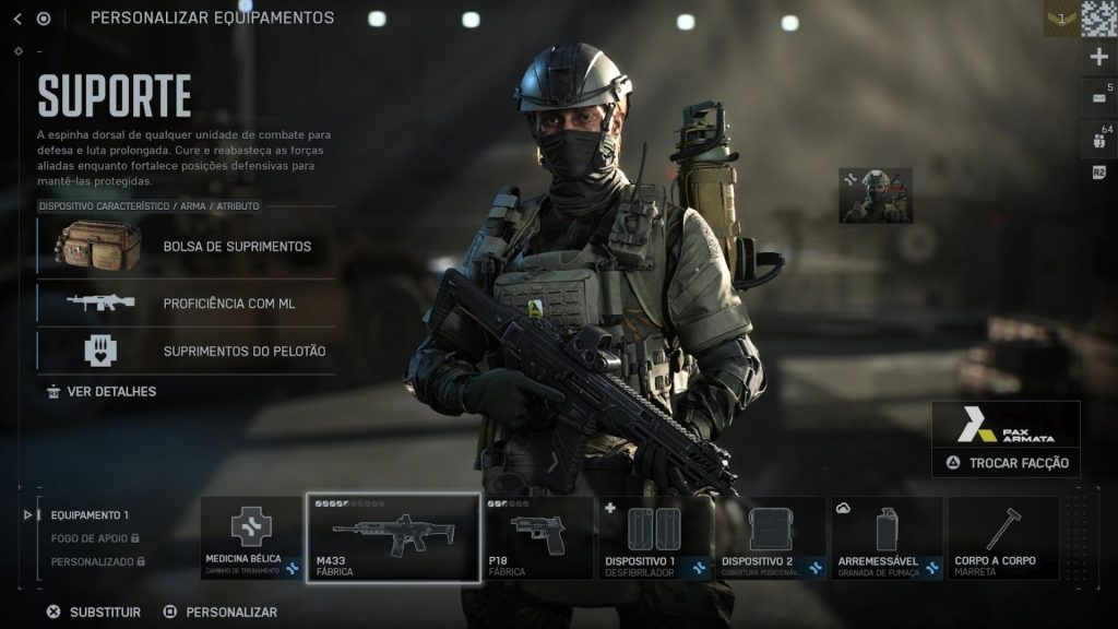 - Suporte: distribua kits de munição e primeiros socorros, além de reviver companheiros sempre que possível. É uma das classes mais eficientes para acumular experiência.