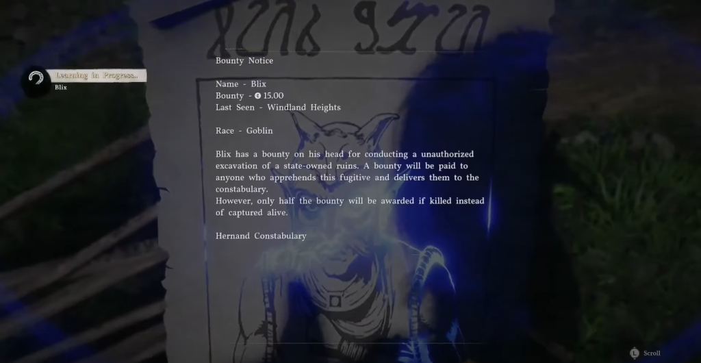 Um dos primeiros casos é o de Blix, um goblin foragido ligado à cidade de Hernand. Diferente de outros alvos, sua aparição depende de condições específicas, o que pode levar jogadores a perder tempo tentando encontrá-lo sem sucesso.
