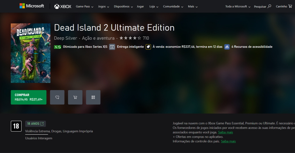 Se você ainda não jogou Dead Island 2, pode ter chegado a hora. A edição Ultimate está custando apenas R$ 37,49 na Xbox Store.