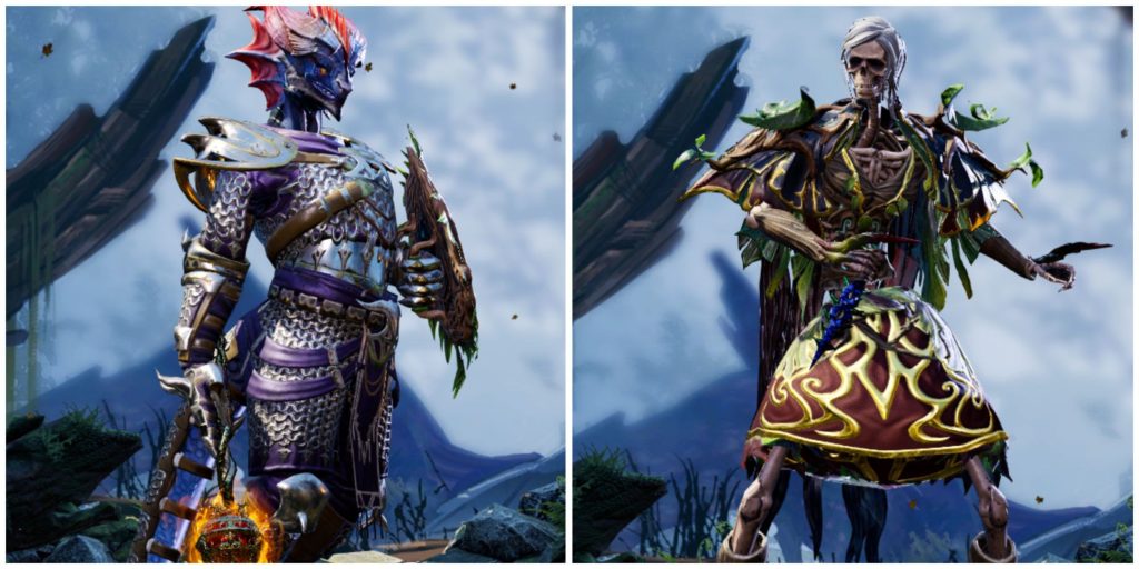 O Bruxo enfraquece inimigos com controle e necromancia, enquanto o Mago de Batalha mistura ataques físicos e mágicos com magias ofensivas. Os dois têm boa resistência e conseguem lidar com grupos de inimigos usando controle e dano simultaneamente.
