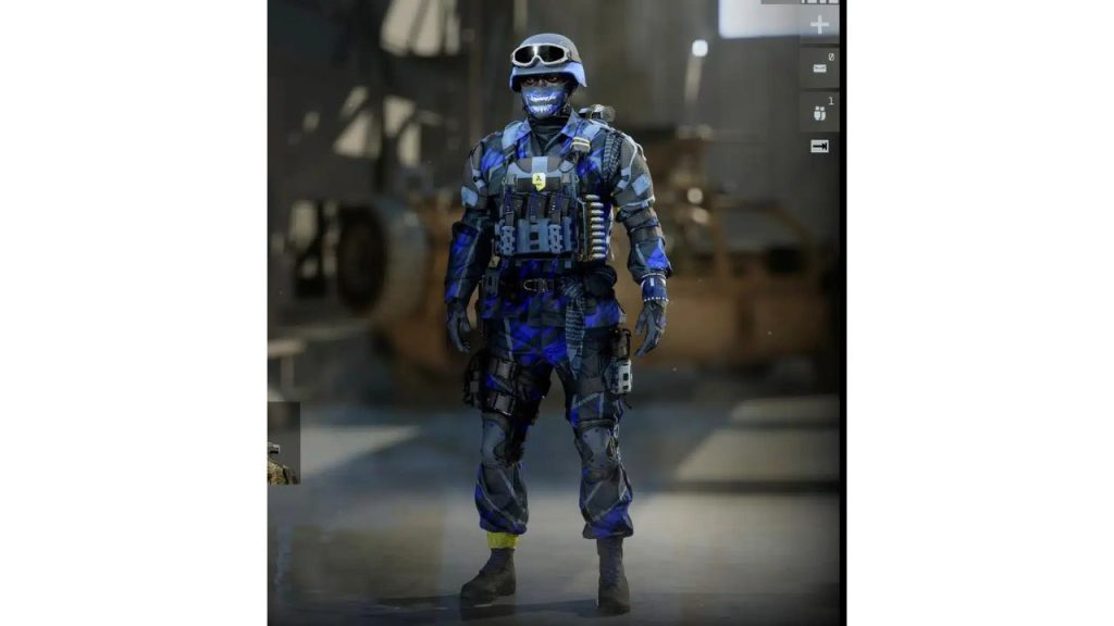 A skin “Wicked Grin” era basicamente um uniforme em tom azul-neon, destoando do estilo mais contido e militar-realista que a EA havia reforçado como um dos diferenciais de Battlefield 6.