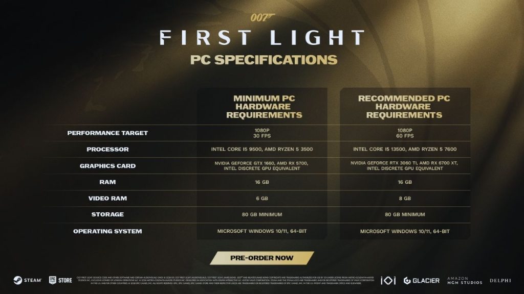 Além disso, 007: First Light contará com suporte a tecnologias modernas de upscaling e otimização, como o DLSS, com o objetivo de melhorar o desempenho em PCs compatíveis sem comprometer a qualidade visual.
