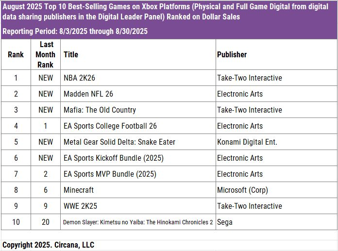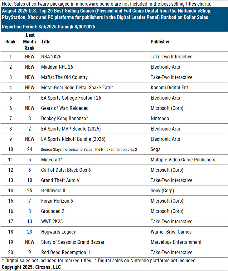Conforme o relatório, NBA 2K26 foi o jogo premium mais vendido do mês. Assim, ele já aparece como o 5º título mais vendido de 2025 até agora. Assim, o lançamento também liderou as vendas nas plataformas PlayStation e Xbox, impulsionado pela mudança do período de acompanhamento para agosto.
