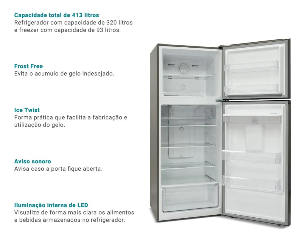 - Não possui compartimento extra-frio
