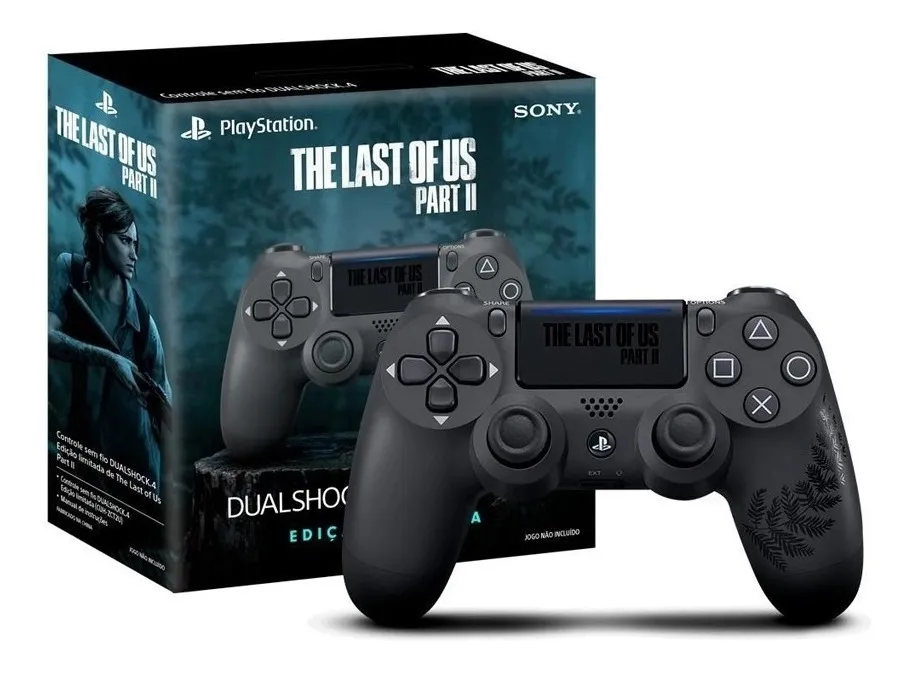 Entre os controles temáticos da PlayStation, o DualShock 4 de The Last of Us Part II se destaca pela sua identidade visual sombria e emocional. Lançado em 2020 junto com o jogo, o controle combina elegância e peso dramático com um acabamento fosco em cinza escuro e um toque artístico único.