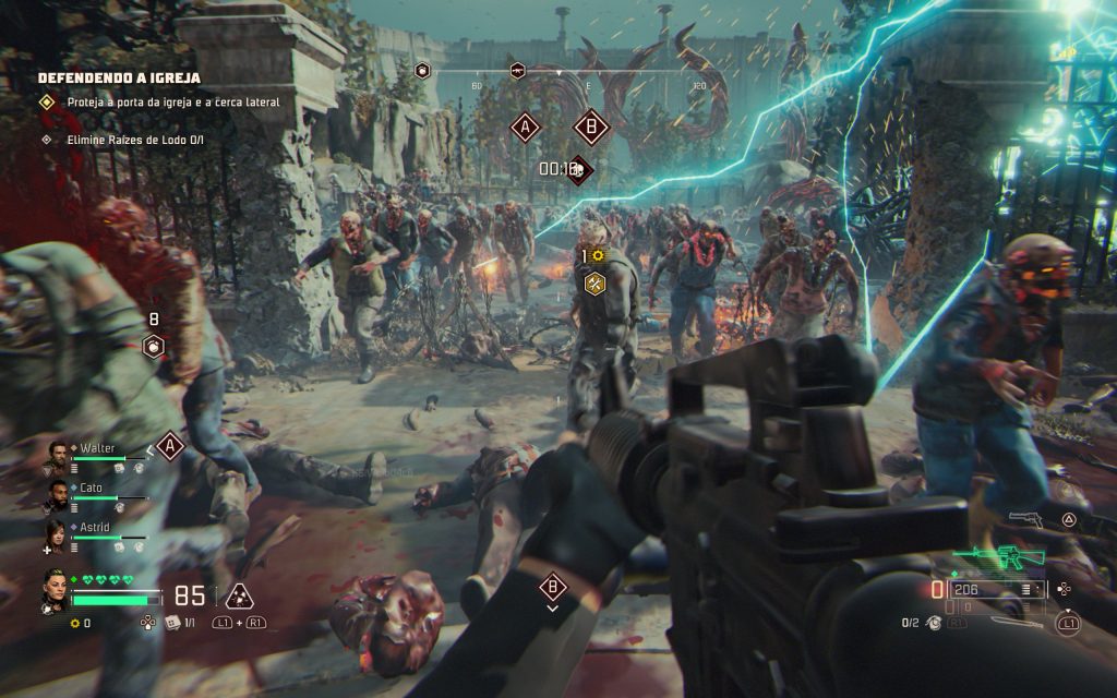 Falando em personalização, o título apresenta um sistema de melhorias, permitindo instalar miras, aumentar o poder de fogo, aumentar capacidade de munição, trocar pentes e aplicar diversos aprimoramentos que tornam cada arma mais poderosa. O arsenal é vasto e evolui conforme o jogador sobe de nível, liberando novos modificadores. Este sistema lembra o que vemos em Call of Duty, criando uma identidade própria em um jogo de zumbis.
