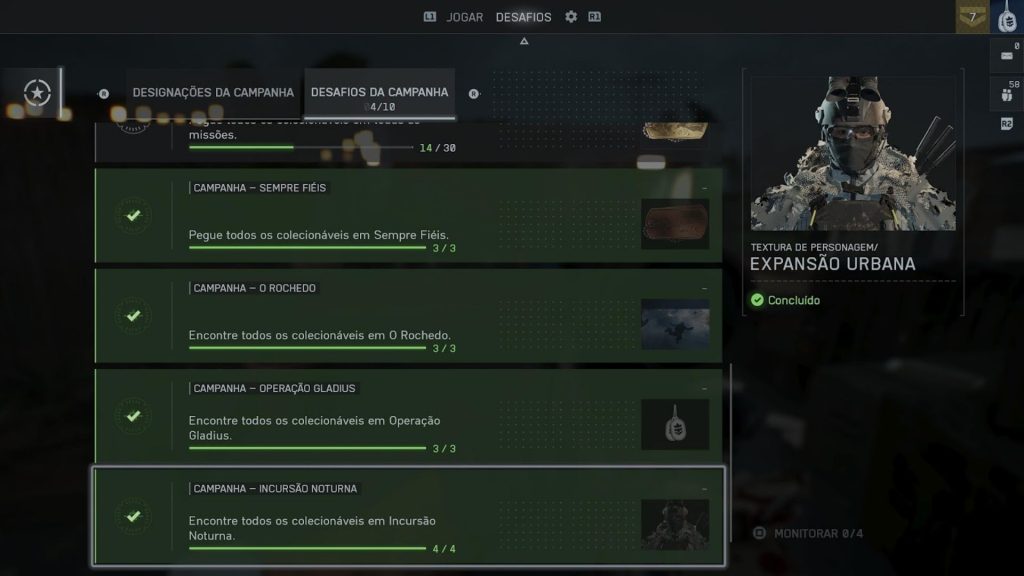 Completar desafios da campanha libera personagens, equipamentos e até conquistas que podem ser usados no modo online. São vários troféus disponíveis, o que incentiva a exploração completa das missões.