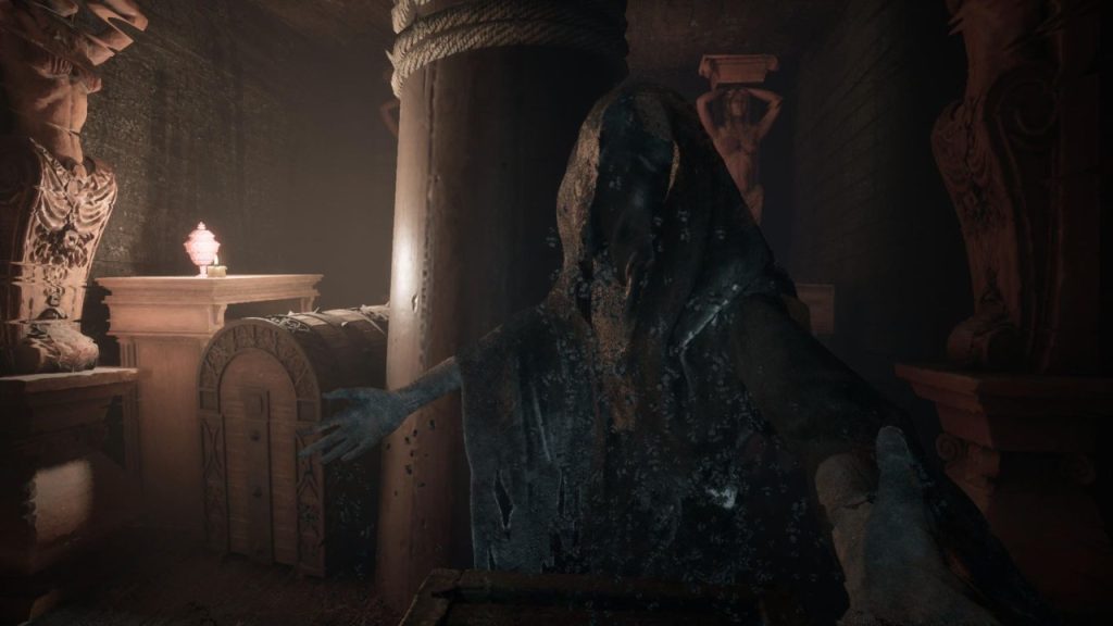 A primeira fase, A Casa Impossível (que também está na DEMO), é mais lenta nesse aspecto e se assemelha mais aos jogos de anomalias, com backtracking, mudanças ambientais logo depois de olhar para um campo de visão específico e jumpscares pontuais. Digamos que ela é um mega tutorial que prepara os jogadores para o que virá.