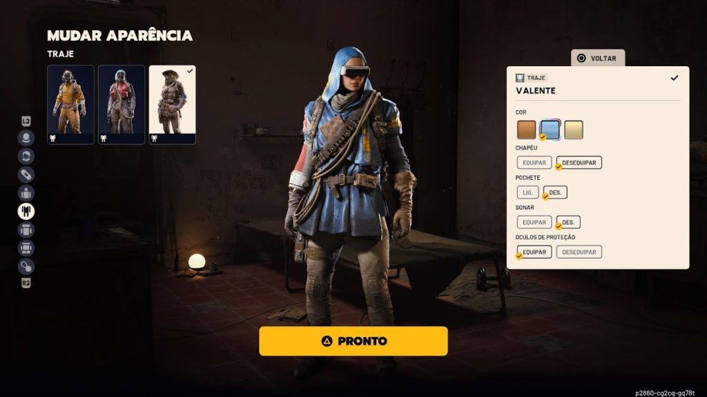 Você pode personalizar seu Raider com roupas, mochilas, capacetes e estilos variados, além de gênero, tom de pele, cabelo, cicatrizes e mais. É simples, mas dá identidade.