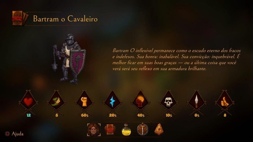 - Bartram, o Cavaleiro – tanque poderoso, porém quase sempre cai para armadilhas e magia.