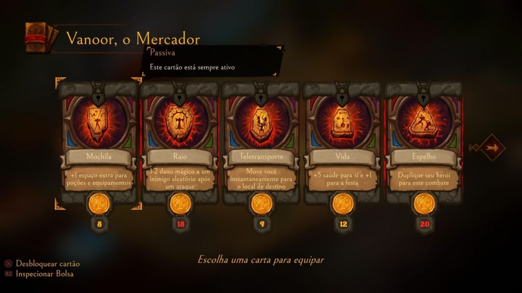 - Vanoor, o Mercador – habilidades permanentes e melhorias especiais.