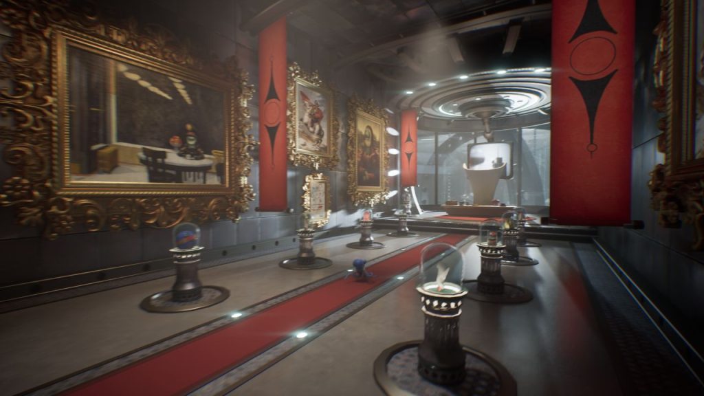 O mundo de Darwin’s Paradox, por sinal, é curioso e bem feito em termos visuais. Há diversas referencias à indústria e ao mercado gastronômico, críticas sociais a exploração animal, especialmente dos mares, e colecionáveis pontuais com alguns easter eggs bem daora e com mais informações de lore, totalizando 20 espalhados pelo jogo. E caso você perca algo, tem uma seleção de capítulos, então não existem troféus perdíveis.