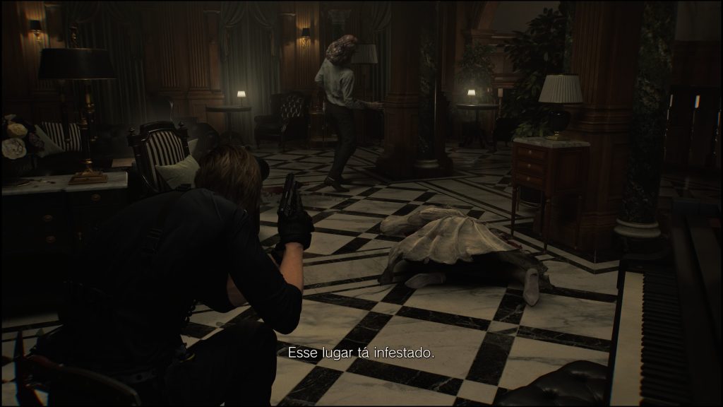 Se havia algo que realmente me preocupava durante a campanha, era a possibilidade de passar grande parte do jogo controlando apenas Grace. Felizmente, isso não acontece, já que o jogo equilibra bem o tempo de tela entre os dois protagonistas. Por eu ter uma forte preferência por jogar com Leon, os primeiros trechos com o personagem inicialmente pareciam muito curtos, mas ganham maior duração conforme a narrativa avança, mesclando entre os momentos de tensão vividos por Grace e o combate mais intenso protagonizado por Leon.