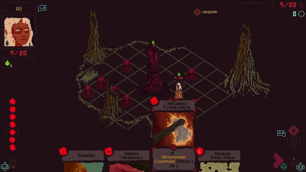 Ro possui pontos de mana que determinam suas ações por turno. Cada carta consome uma quantidade específica, enquanto mover-se pelo campo também gasta recursos. Isso obriga o jogador a planejar com cuidado cada decisão, pois errar não é apenas um detalhe; pode significar derrota.