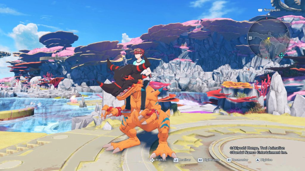 Nunca imaginei que diria isso, mas montar em um Digimon e sair explorando os mapas é realmente muito legal. Entre os Digimon que podemos controlar, alguns podem ser usados como montarias. Montar em um GeoGreymon, ou até mesmo em um Digimon voador como o Kabuterimon, é extremamente divertido.