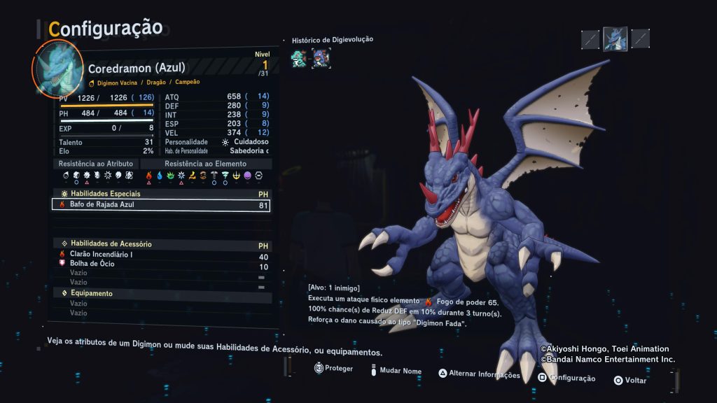 A Digievolução, inclusive, é bem simples: ao aumentar o nível dos Digimons, seus substatus como ataque, defesa, HP e velocidade também sobem. Ao atingir certos valores em atributos específicos, novas formas de Digievolução são desbloqueadas.