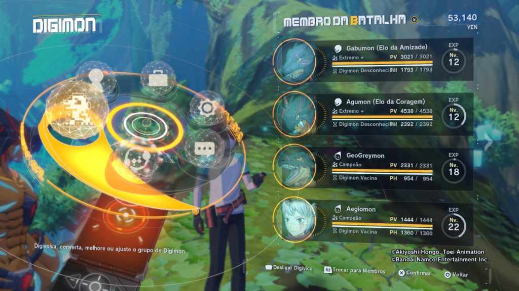 Ao derrotarmos todos os inimigos, todos os Digimon que possuímos recebem experiência, mesmo os que não estão nos times ativos. Isso facilita bastante a progressão e a busca pelas melhores Digievoluções.