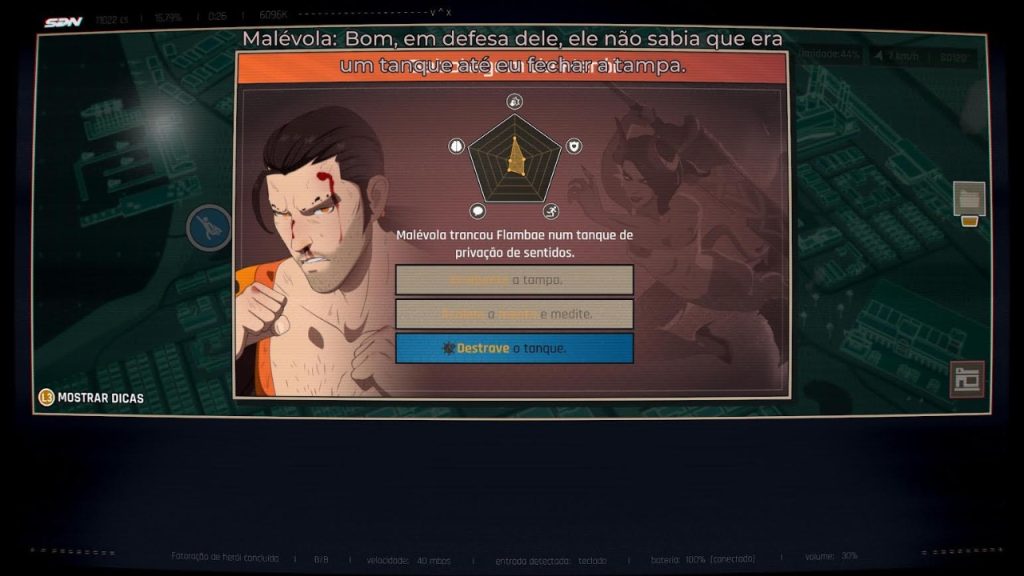 Alguns episódios também são curtos, variando entre 45 a 60 minutos, o que dificulta explorar certos personagens de uma maneira mais aprofundada. Tirando esse ponto, o roteiro de Dispatch beira a perfeição, com decisões e consequências bem amarradas e diálogos que perpassam o mundo virtual, garantindo um ar realista para os personagens e o mundo do jogo. Temos várias piadas de tom mais maduro, referências à cultura pop, xingamentos e por aí vai. Nenhum diálogo parece engessado, até os de tom romântico.