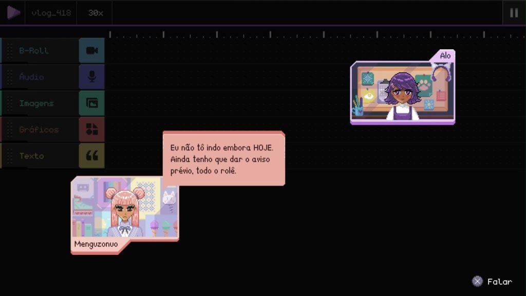 Por ser um jogo no geral muito agradável, Fishbowl vai passar por aí e você nem vai perceber o tempo. É tudo bem acessível, mesmo um minigame à la Guitar Hero, que consiste em fazer um bom trabalho de edição de vídeo e encaixar cores em uma espécie de ferramenta de edição. Como o trabalho é diário, essa recorrência faz ate mesmo você sentir o que alo sente: mais confiança no serviço e uma sensação de que as coisas tão melhorando naturalmente.