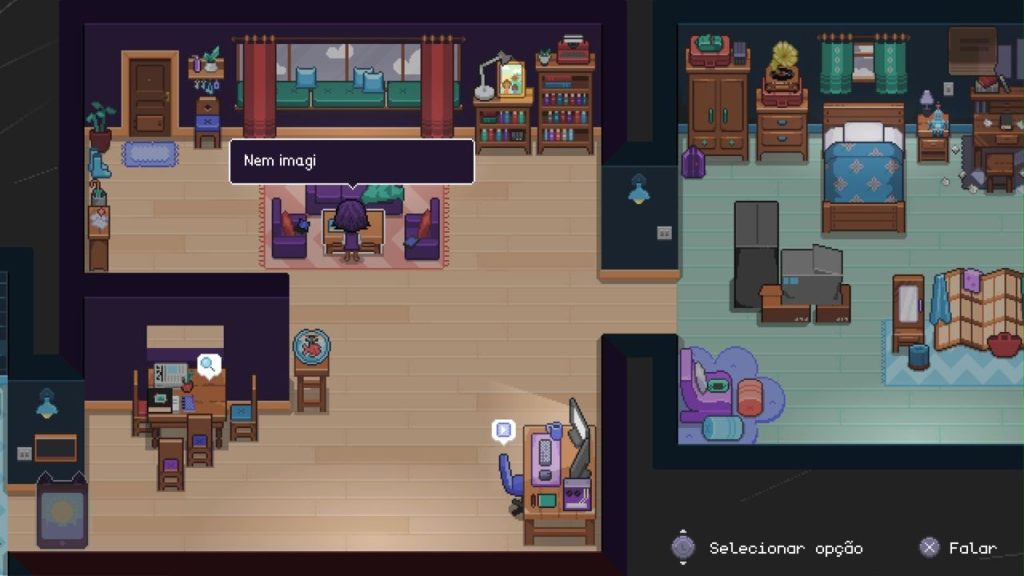 Falando sobre outros elementos, Fishbowl conta com uma excelente trilha sonora retrô, visuais em pixel art bem bonitos, mas nada impressionantes, e um fluxo de jogabilidade que não cansa, mesmo diante de uma rotina onde você acorda, faz uma série de coisas e dorme, pra depois fazer o mesmo no dia seguinte. Óbvio que a narrativa é bem mais engessada do que poderia e não há um peso assim real nas decisões, no sentido de haver um impacto ali.