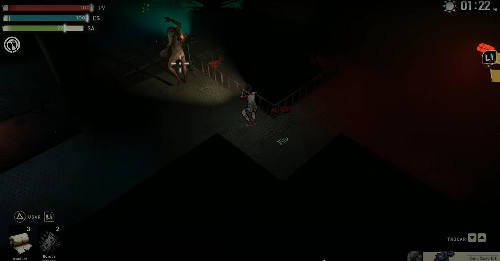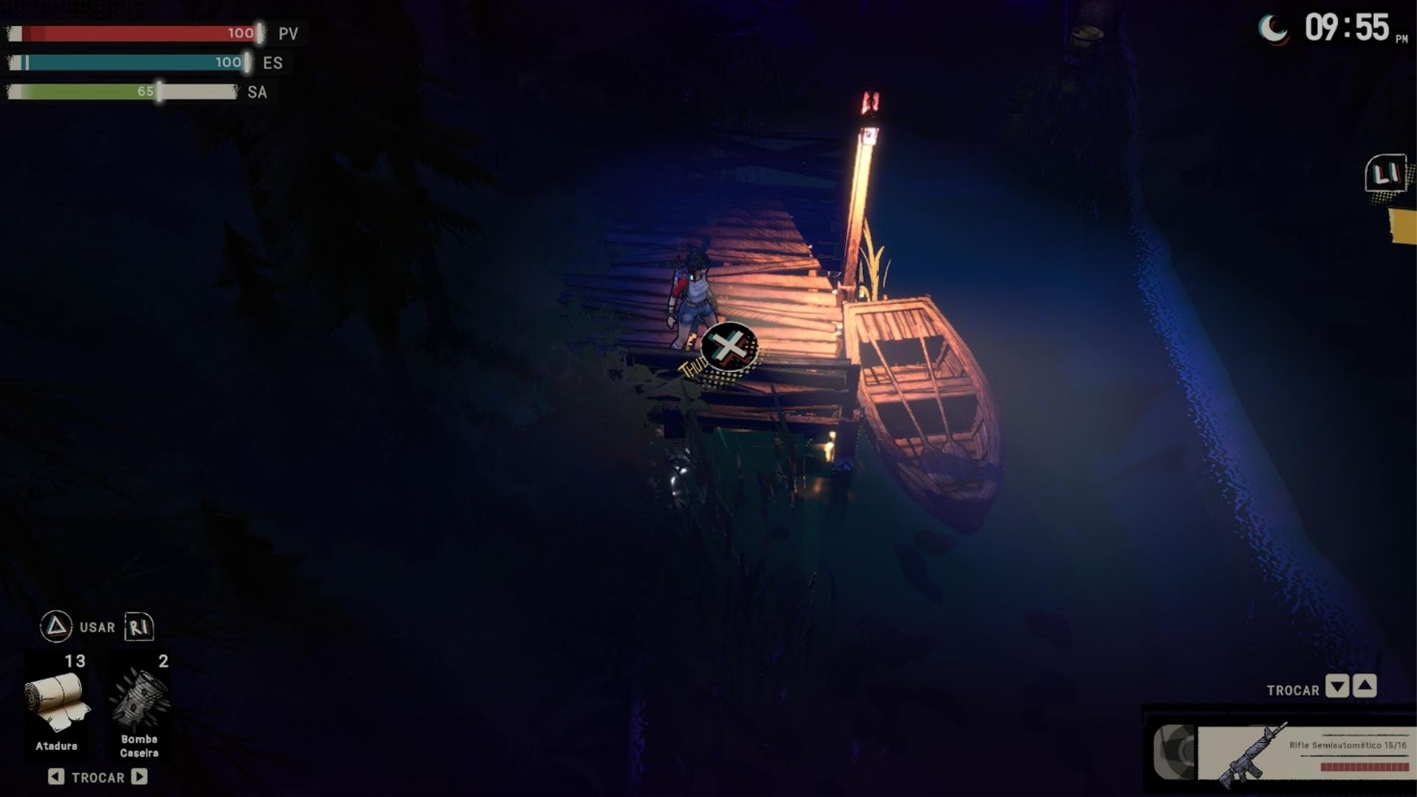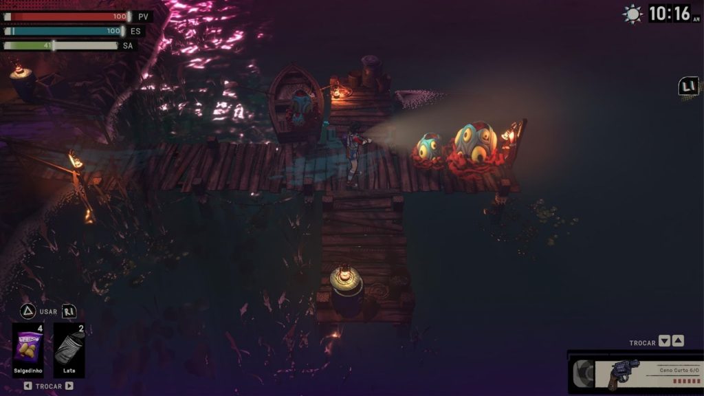 À noite, o cenário muda: os inimigos ficam mais agressivos e o risco aumenta consideravelmente. Essa mudança de ritmo funciona como conceito, mas, na prática, não é suficiente para sustentar o interesse quando o restante da jogabilidade começa a mostrar seus problemas.