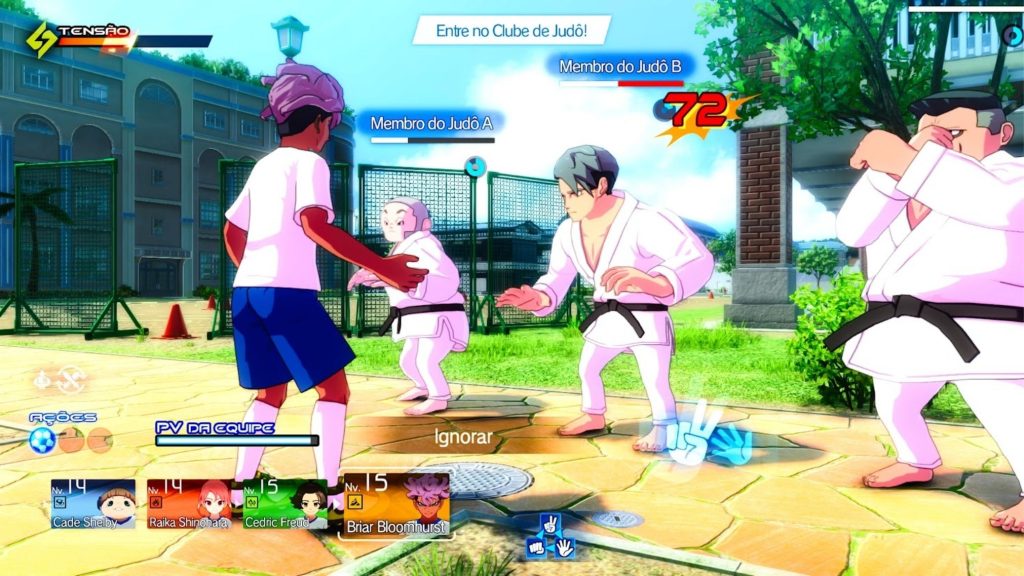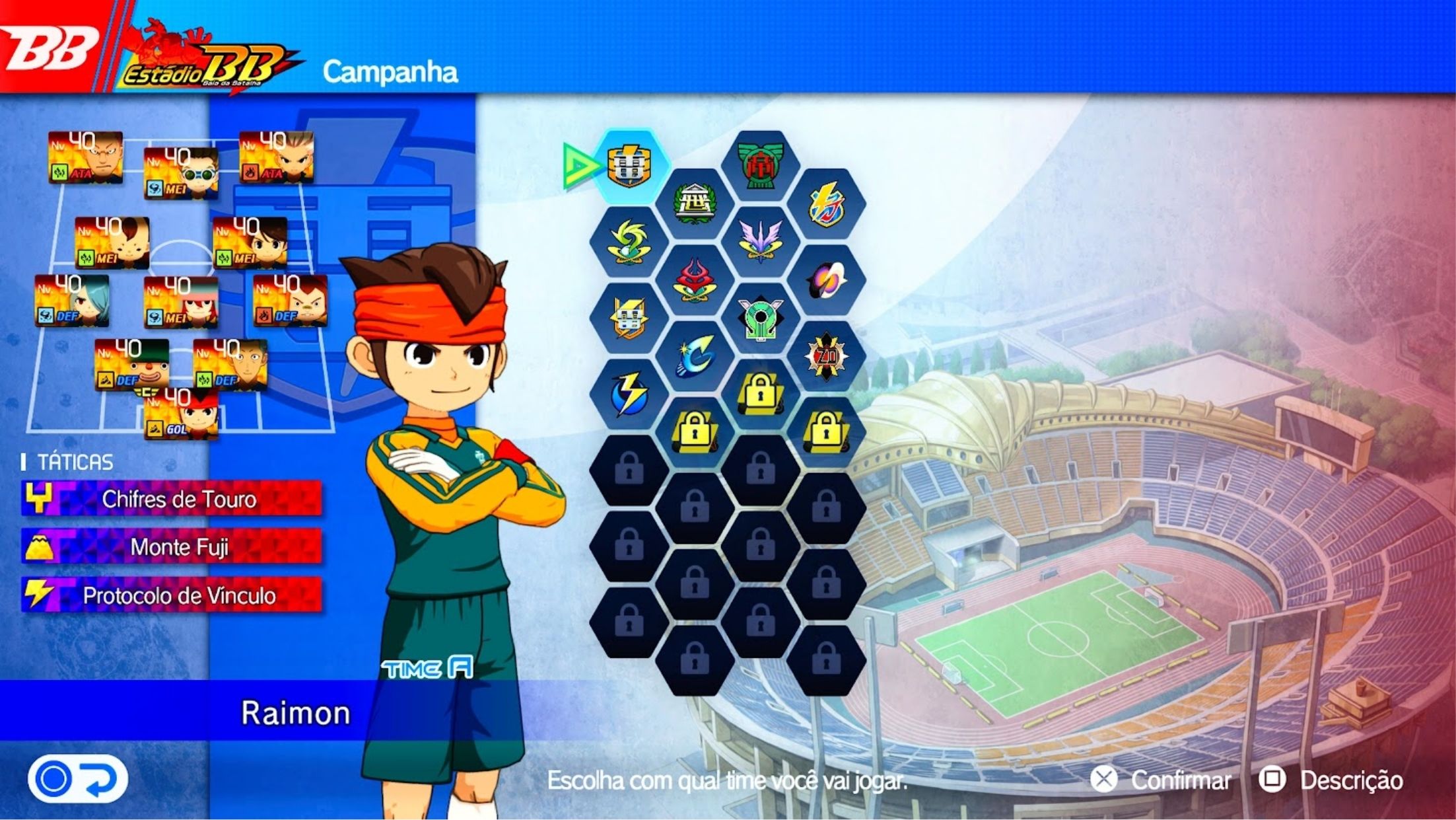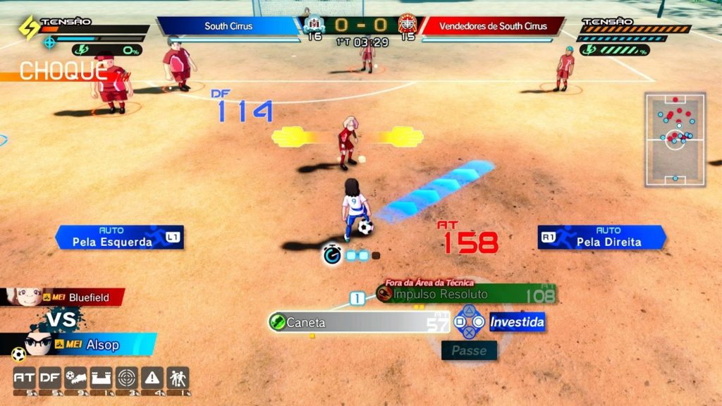 • Estádio Baía da Batalha: Uma espécie de modo arcade, voltado para partidas rápidas contra equipes clássicas ou desafiadoras. Serve como aprendizado das mecânicas de futebol do jogo, incluindo passes, técnicas especiais, barras de tensão e combos. Aqui a loucura é liberada.