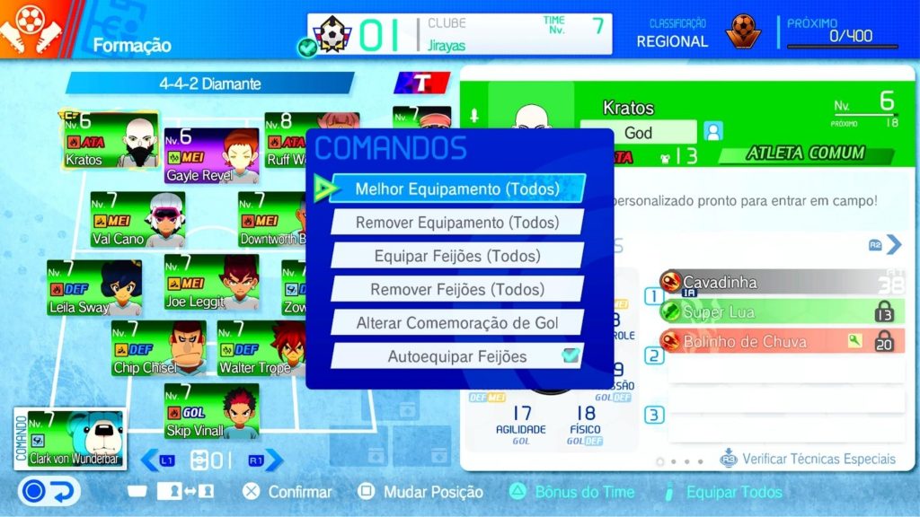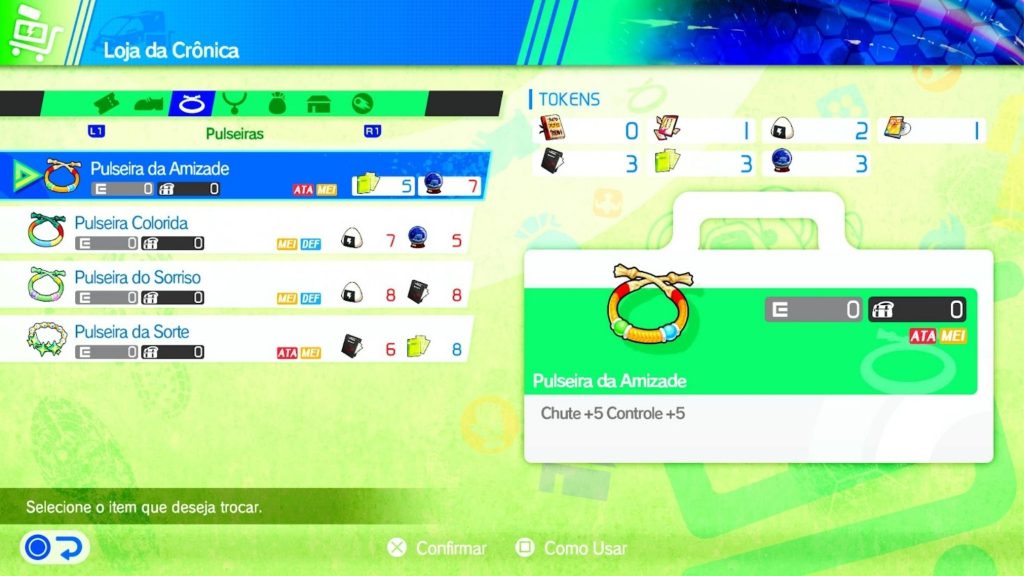 Portanto, ao completar essas tarefas, você recebe uma espécie de “cartas”, que funcionam como moeda do jogo. Elas podem ser usadas para comprar itens na loja, personalizar seu time e adquirir equipamentos, como chuteiras e pulseiras, que melhoram os atributos dos jogadores.