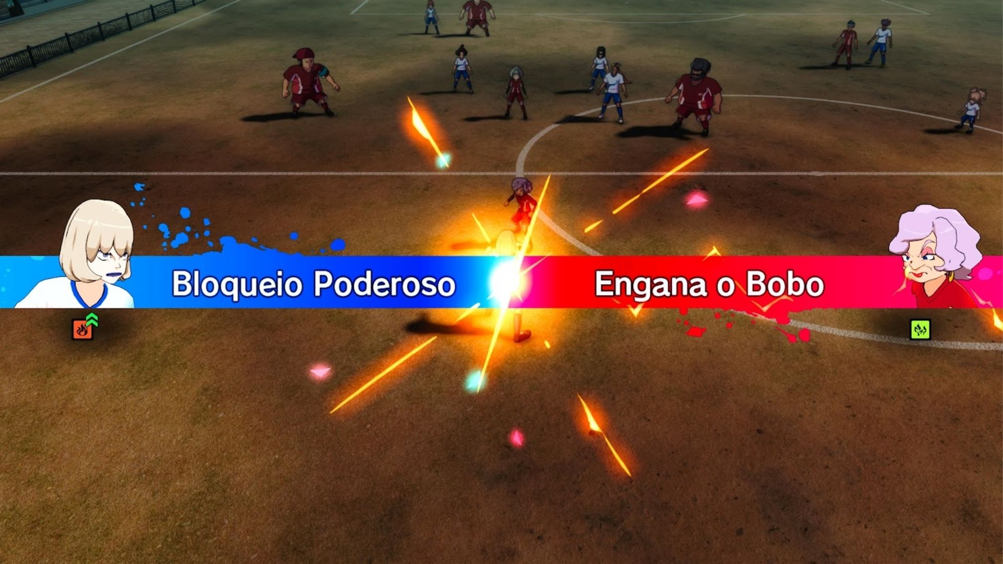 Um ponto que poderia ser melhor é a frequência excessiva de Choques, os embates entre dois jogadores no campo. Eles são divertidos e estratégicos, permitindo ganhar tensão e executar habilidades, mas durante as partidas eles acontecem de forma exagerada.