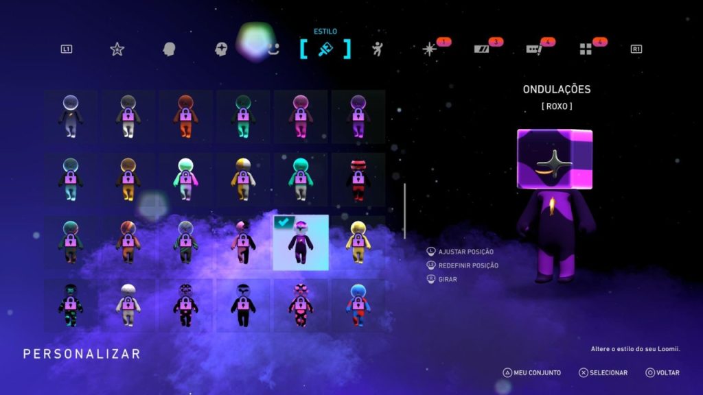 Lumines Arise possui um rico sistema de personalização onde você pode customizar seu avatar com uma série de cosméticos. Eles vão desde os aspectos visuais do boneco até o banner para o multijogador, permitindo uma combinação estética e de cores quase infinita.