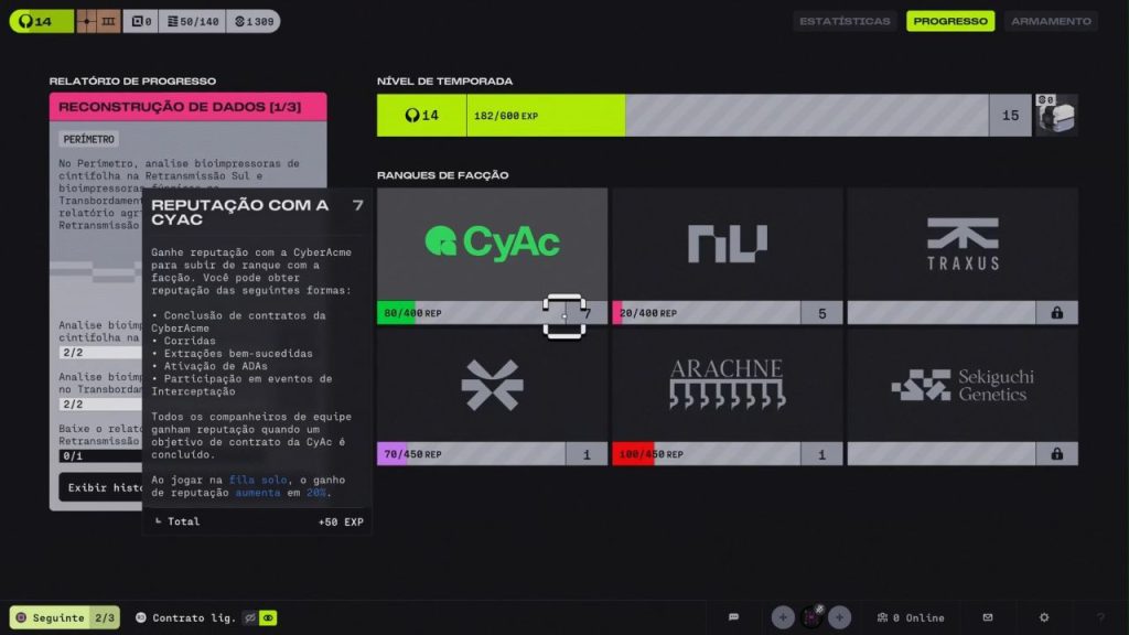 A progressão baseada em facções e contratos também tem méritos. Mesmo quando a extração falha, quase sempre existe alguma sensação de avanço. Reputação, desbloqueios e recompensas ajudam a evitar que derrotas virem perda total. Por outro lado, o fato de só ser possível avançar um contrato por vez torna esse sistema mais arrastado do que deveria.